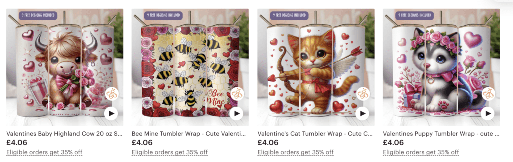 Now, here’s the cherry on top. Every single purchase comes with a little surprise—nine bonus tumbler wraps. Yep, you read that right. Buyers get nine extra designs for free with every order. Not only does this make my listings way more appealing, but it also sets my store apart from the crowd.
