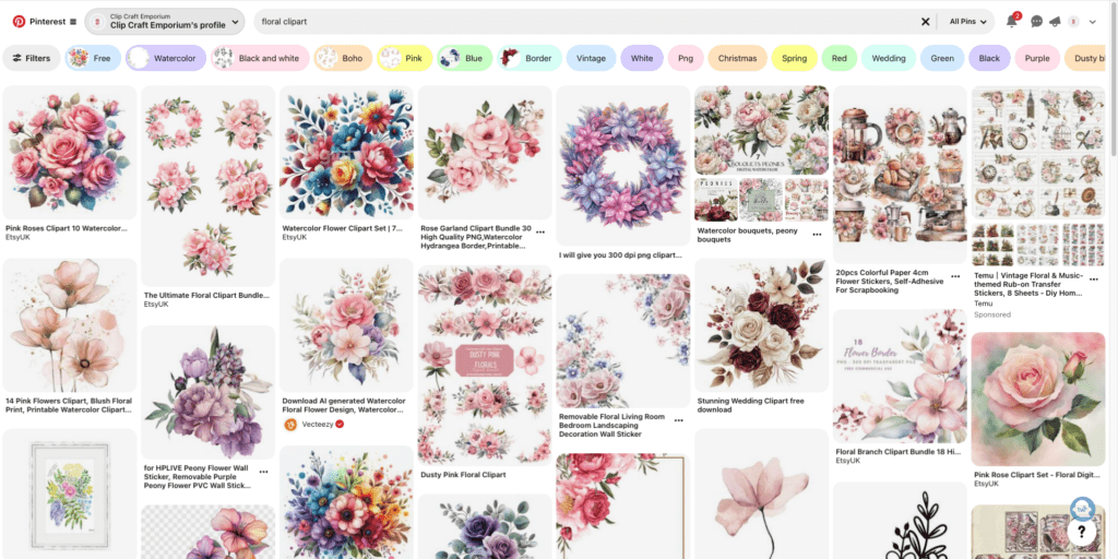 Here’s an example – I searched floral clipart and up pops lots of beautiful clipart. However you see that long one in the middle (Dusty Pink Florals) , your eyes are instantly drawn to it. It’s mine by the way, one of my best selling clipart packs in Clip Craft Emporium, and this is exactly why I take the time to change the dimensions of my Etsy listing images to make then optimal for pinterest. Which leads on to the next part – the quick way to do this and save a ton of time!